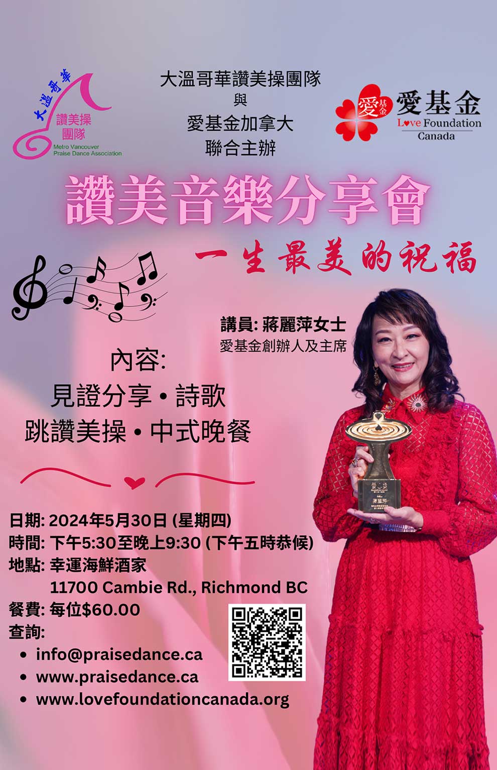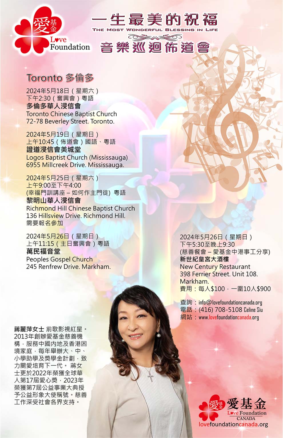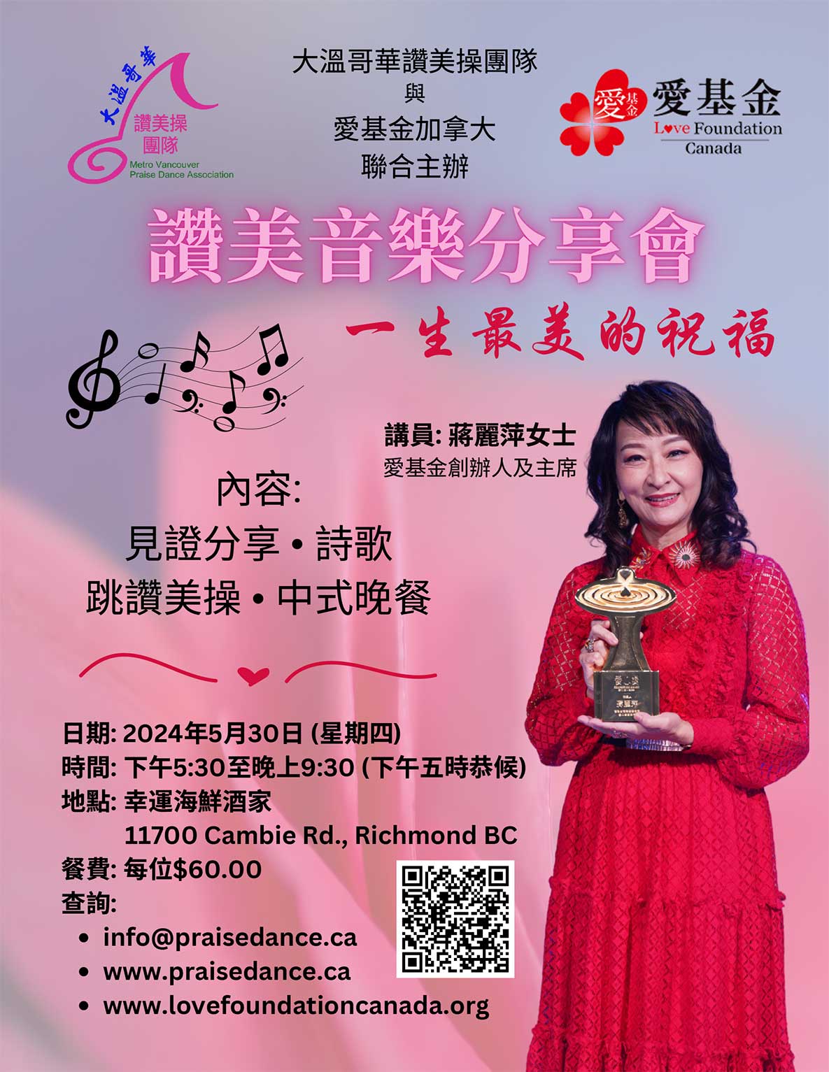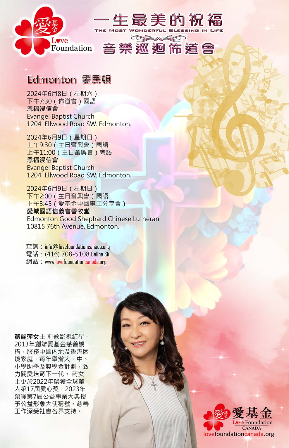 時間:下午 2:00PM (主日奮興會), 下午 3:45PM (愛基金中國事工分享會)